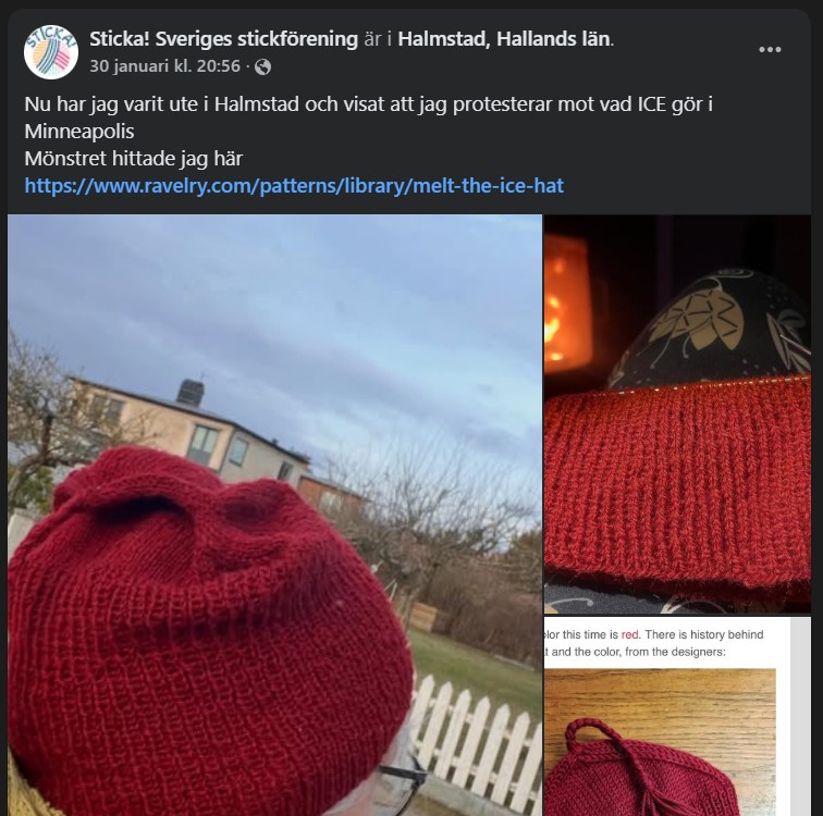 På Sveriges stickförenings Facebooksida diskuteras de röda mössorna: