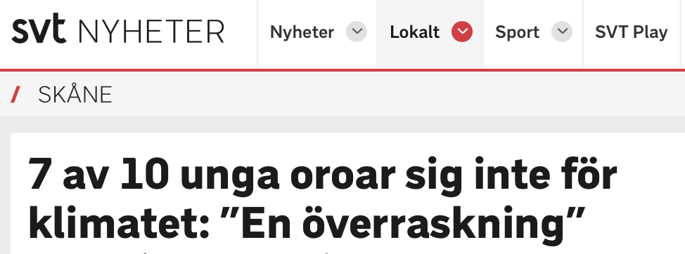 – Vi kan än så länge bara spekulera, men en anledning kan vara att vi lever i en tid med många kriser. Klimatförändringarna är bara en av flera pågående kriser som unga ska hantera känslomässigt, säger Wullekord till statstelevisionen.