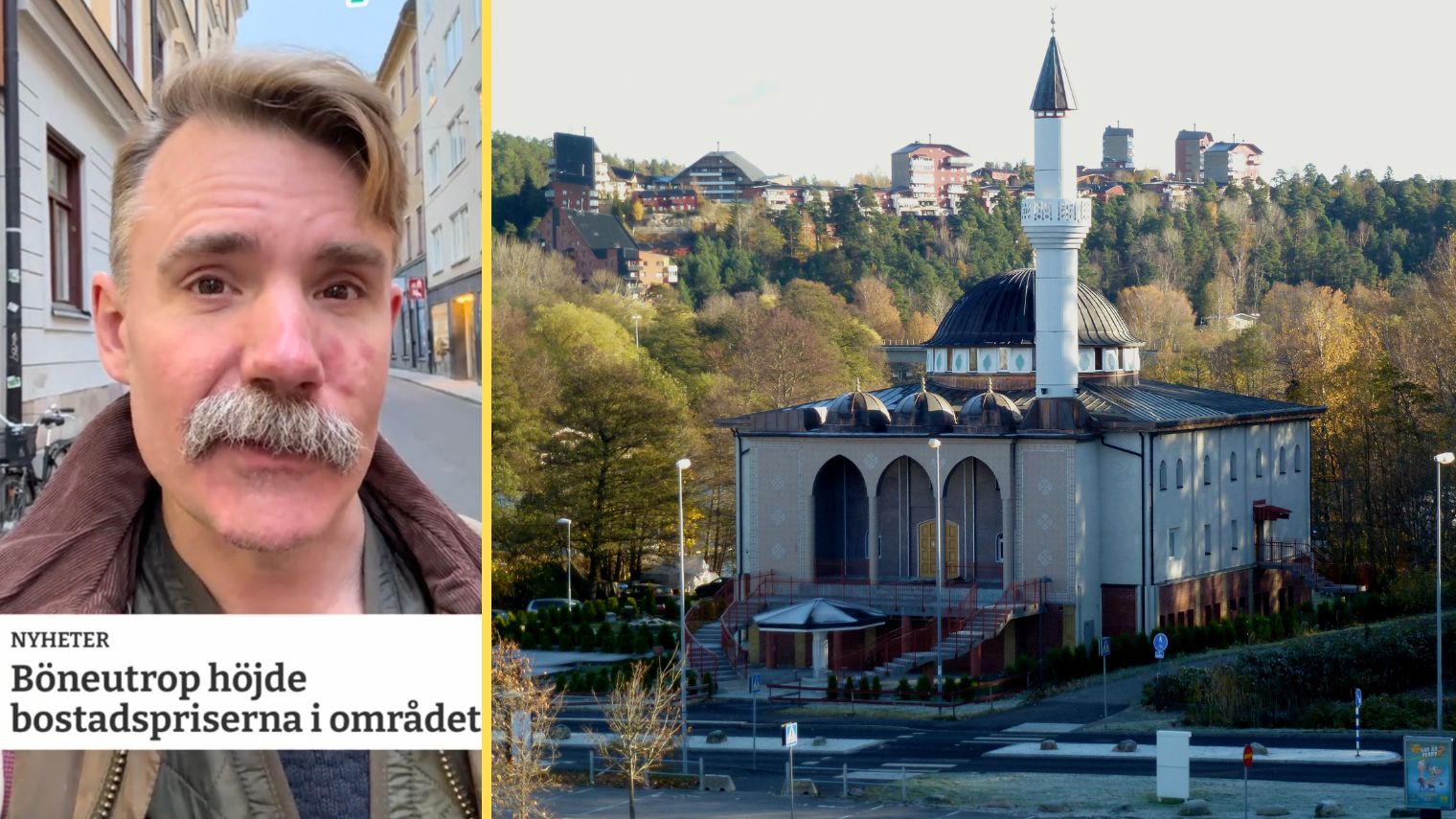 – Men hur är det egentligen med den saken? Jo, det vet vi faktiskt, för några forskare vid Uppsala universitet har studerat hur bostadspriserna påverkades när böneutrop tilläts vid moskéerna. Och surprise, surprise, fastighetspriserna steg. Det finns helt enkelt en hel del människor i vårt samhälle som är villiga att betala lite extra för att bo nära en moské, och då stiger priserna.