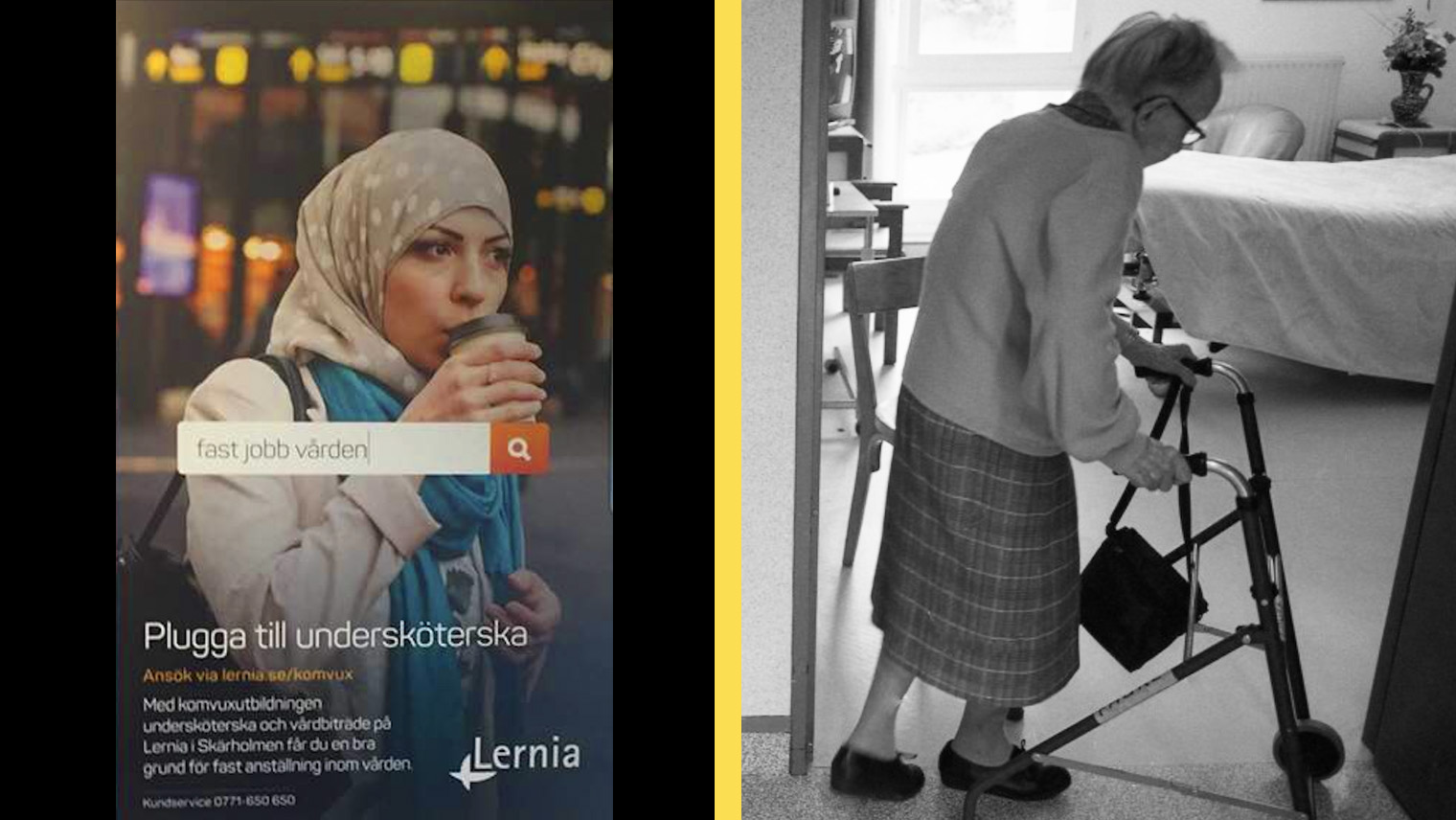 – Det har i praktiken blivit ett integrationsverktyg snarare än en vårdprofession. I tre år har jag hållit på med hemtjänsten och inte träffat på en enda person med svenskt ursprung. Hon fortsätter: