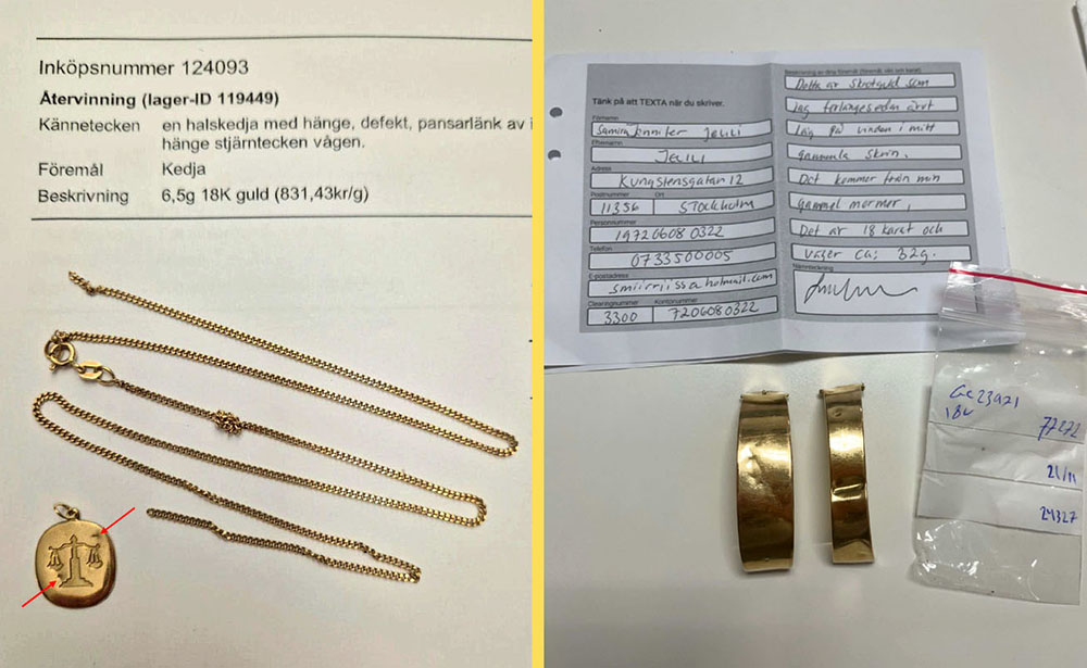 Åtalet omfattar även grovt häleri och grovt näringshäleri. Enligt åklagaren ska Samira Jelili mellan 2020 och 2025 ha mottagit och sålt eller pantsatt misstänkt stöldgods vid minst 128 tillfällen hos olika guldhandlare och pantbanker. Det sammanlagda beloppet uppgår till drygt en miljon kronor.