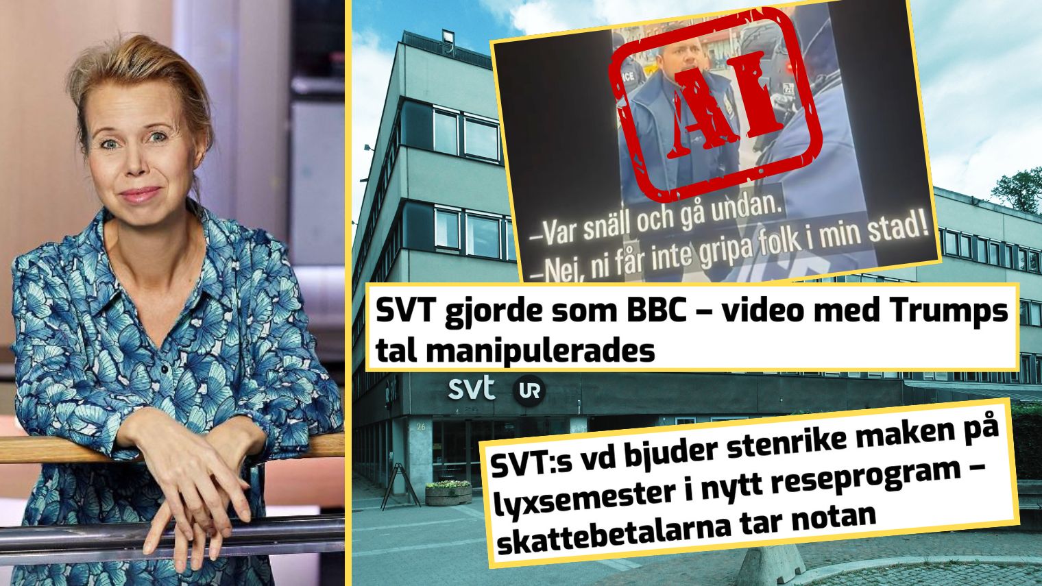 Efter en fejkad AI-genererad polisfilm i Agenda, en omstridd klippning av ett Trump-tal och kritik för nepotism pressas SVT:s vd Anne Lagercrantz av frågor om partiskhet och bristande kontroll. Men när Sverigedemokraterna kräver att SVT-ledningen ska svara på frågor från kulturutskottet går hon till hårt angrepp och kallar det för ”politiska förhör”.