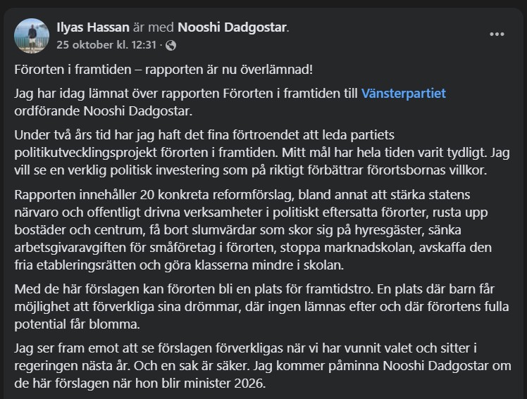 – Jag tror partiet kommer att ta emot allt. Min ambition är att ligga på. Vi har stort förtroende i våra förorter och vi vill förbättra deras villkor, säger Hassan.