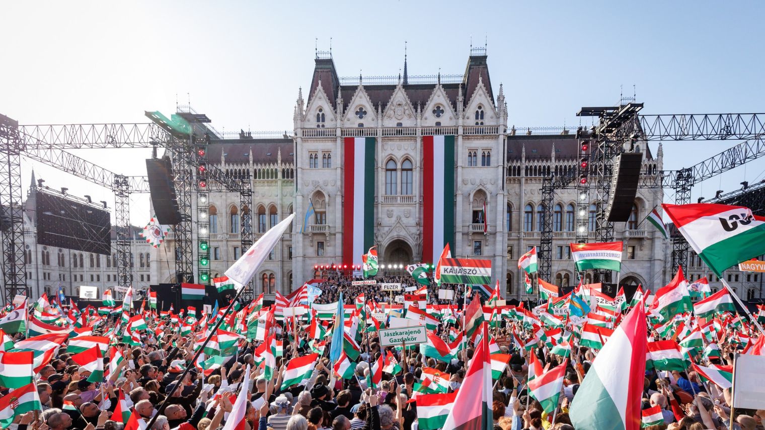 Söndagen årliga så kallade fredsmarsch kan ses som ett styrkebesked för Orbán. Gatorna fylldes av ett långt tåg med ungerska flaggor som tågade fram för att lyssna på ett tal av Orbán.
