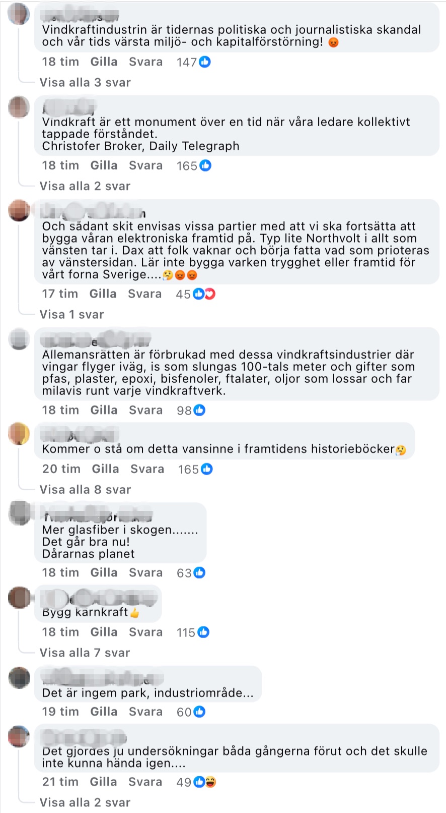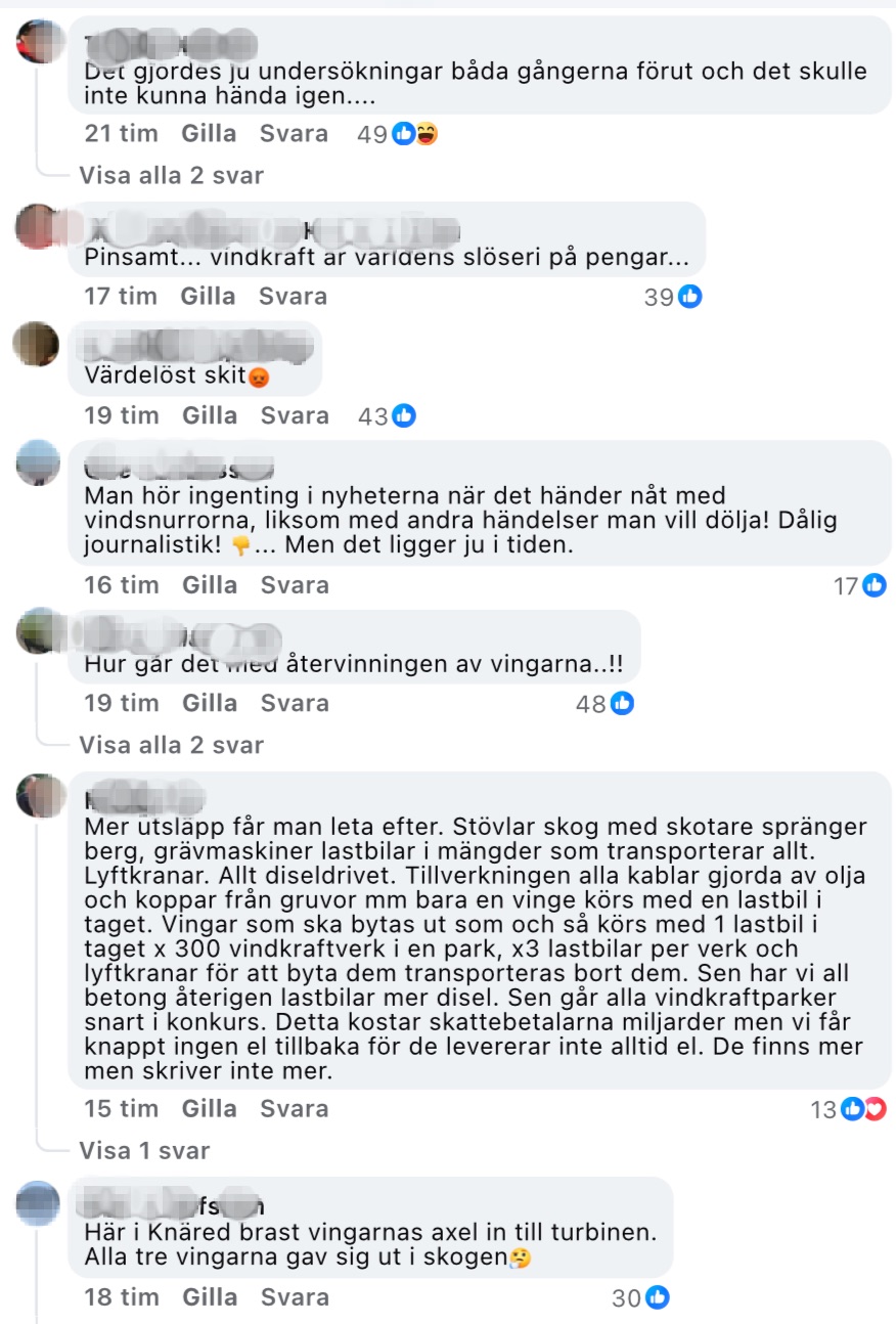 I lokaltidningen Jämtlands-Tidnings kommentarsfält uttrycker många läsare hård kritik mot vindkraftsutbyggnaden.